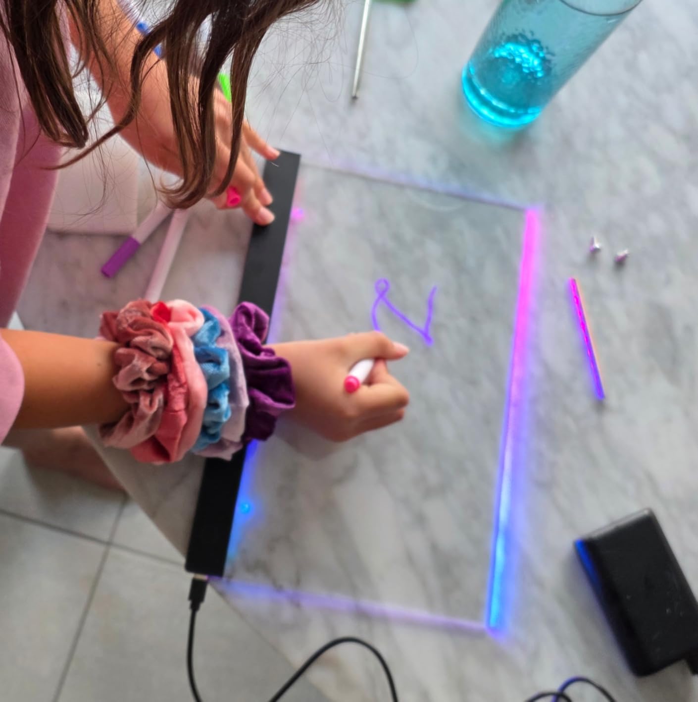 Se la regalé a mi hijo y no deja de jugar. La pizarra luminosa con LED de colores hace que cada dibujo sea especial y divertido, sobre todo a oscuras.
